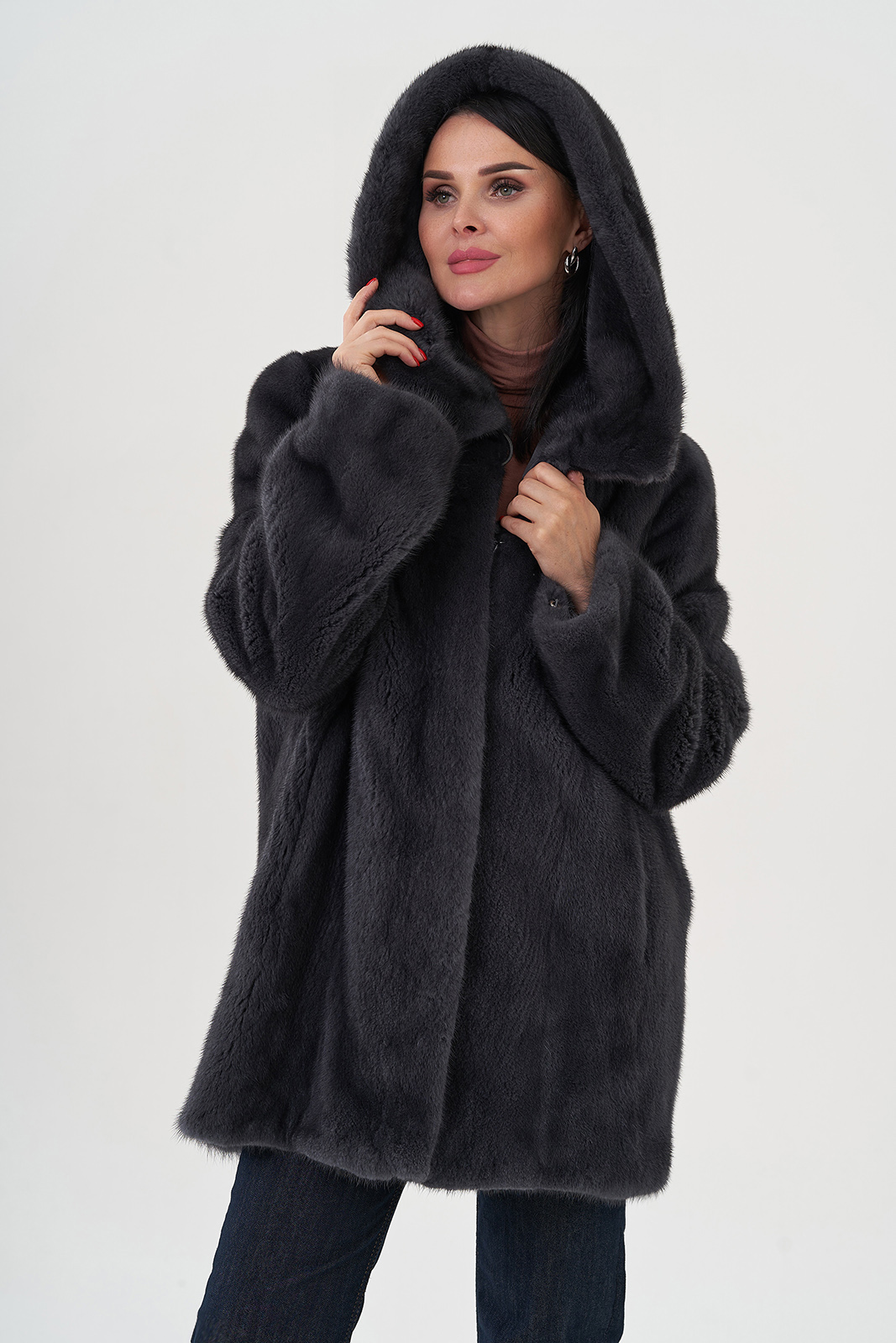 Шуба из норки с капюшоном